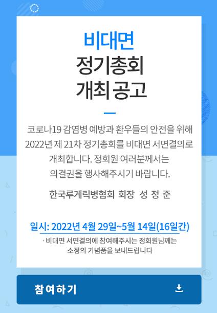 코로나19 확산 방지와 환우들의 안전을 위해 2022년 제 21차 정기총회를